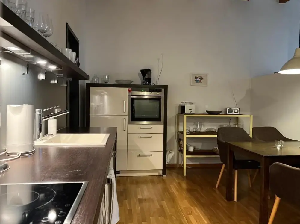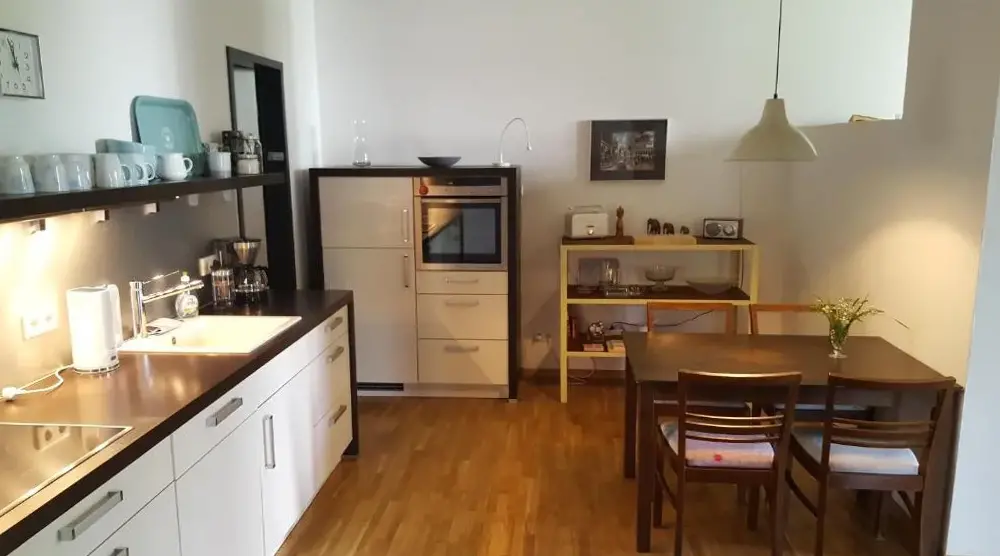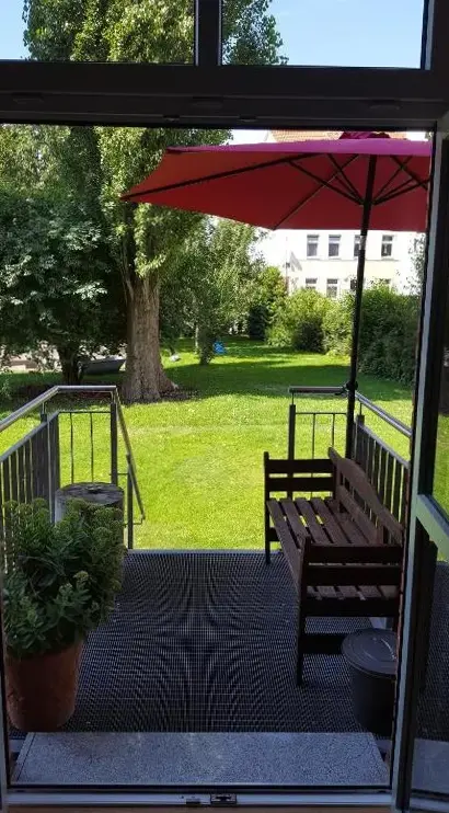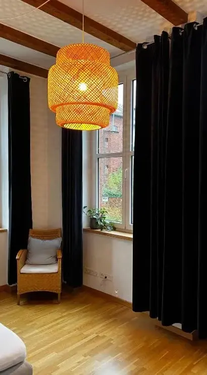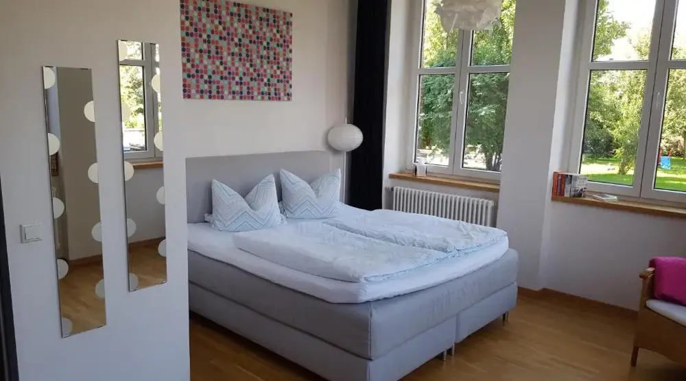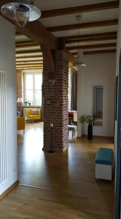 Een uitzonderlijk mooi ingericht, goed uitgerust appartement in een prachtig gerenoveerd monumentaal gebouwencomplex, rustgevend uitzicht op de herfstkleurige gemeenschappelijke tuin vanuit de woonkamer, de oude binnenstad van Erfurt is te voet bereikbaar in ongeveer 20 minuten, perfect voor bijna een week werken in Erfurt
